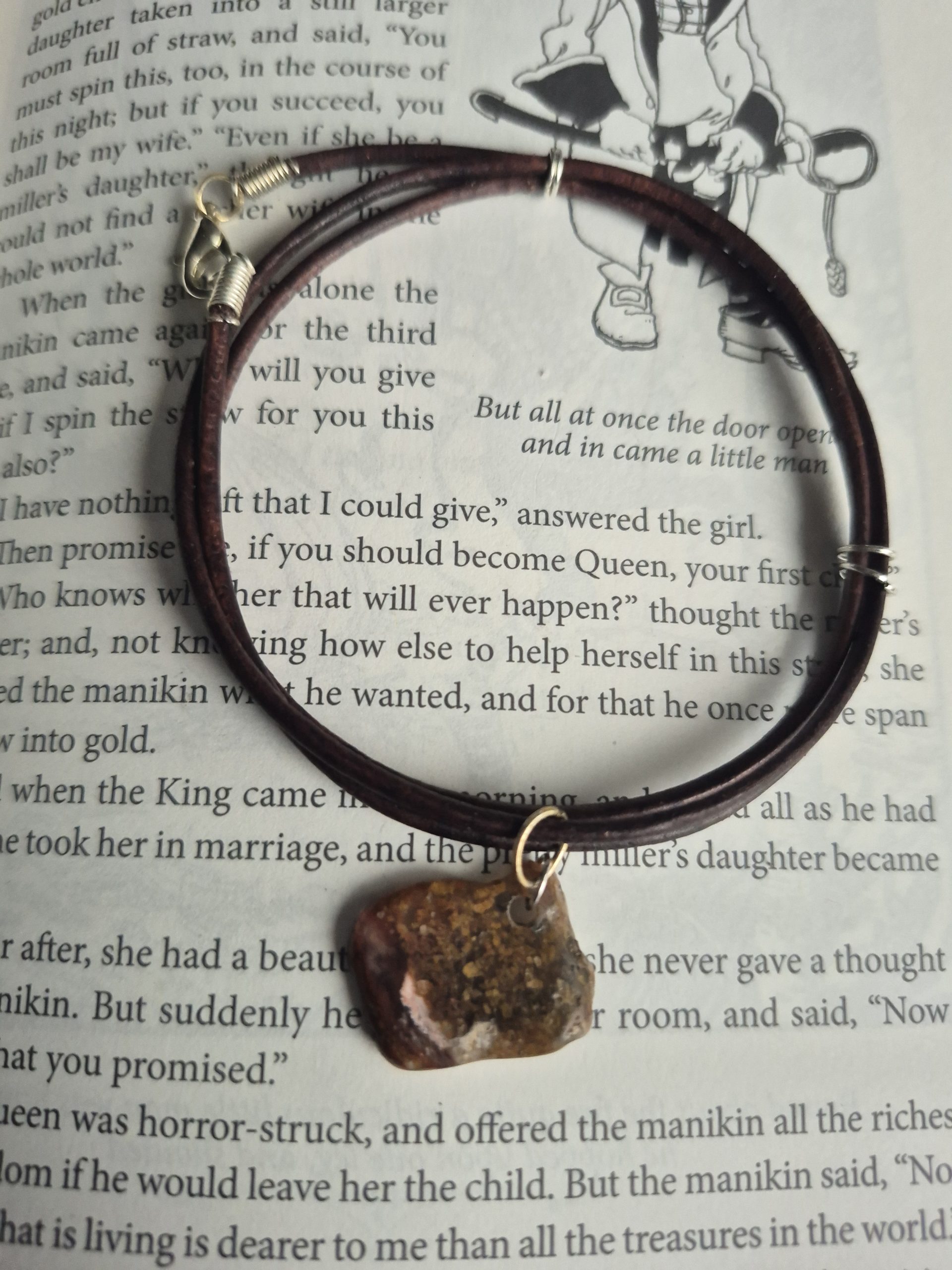This leather bracelet is decorated with a handcut and polished moss agate slice.